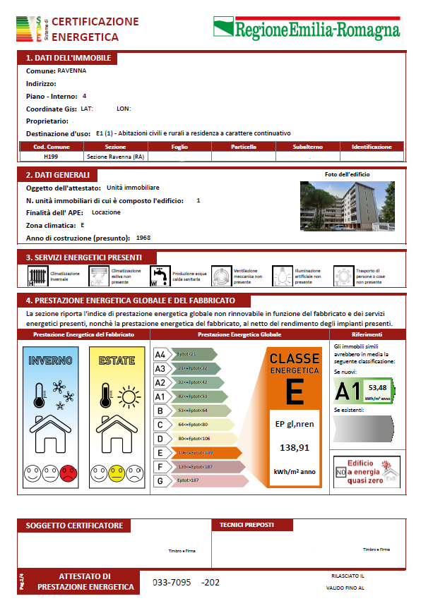 ✅ Attestato di Prestazione Energetica (APE) valido per legge